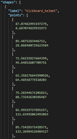 예를 들어, 이렇게 라벨링을 붙여줄 수 있고, 사진과 같은 이름의 json파일을 만들어 boundary를 만들어줘야합니다!