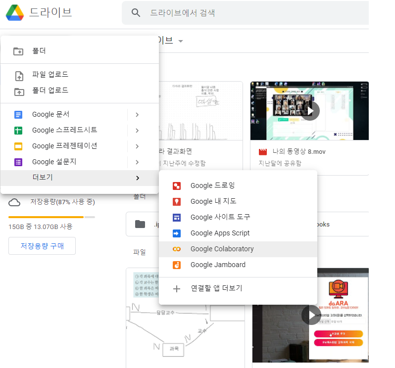 1. 구글 드라이브 새로 만들기에서 Google Colaboratory를 만들어주세요.