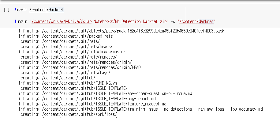이제 코드를 통해 /content/darknet이라는 하위 폴더를 생성하고, 압축해제를 시켜줄거에요.